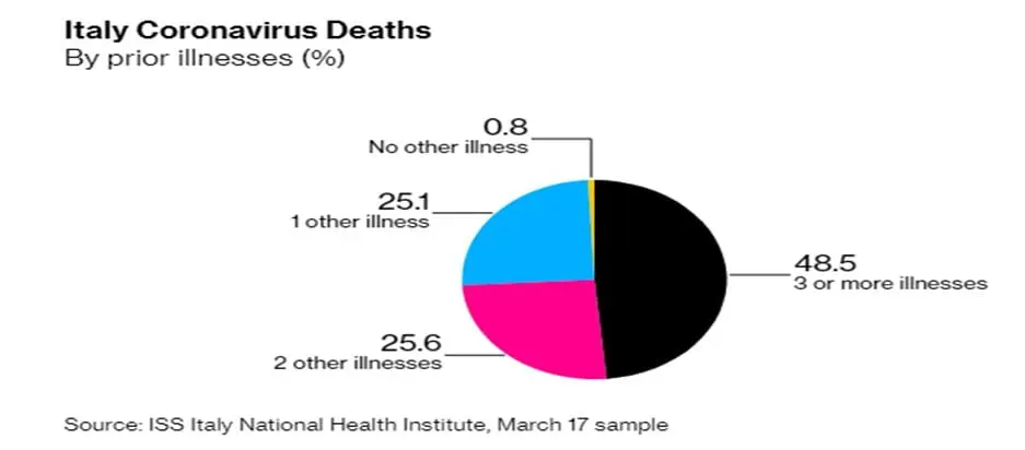 The data above clearly highlights why Italy has such an abnormally high death rate and this article (clearly) confirms what all studies have already confirmed that those with already compromised immune systems are the most at risk.